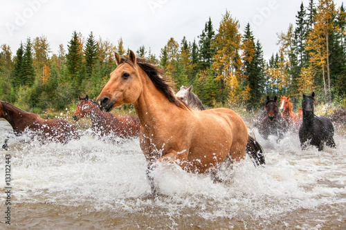 Horses Crossing a River in Alberta, Canada