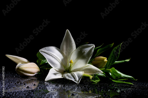 white lily flower on black