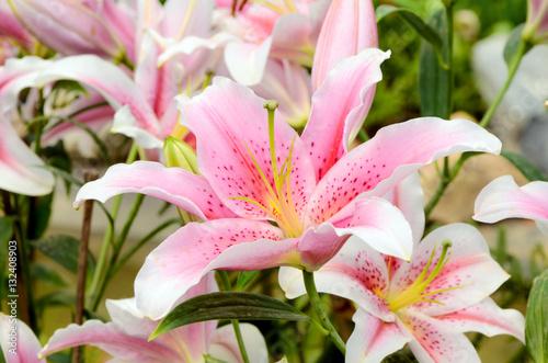 Pink lily in botanical garden.