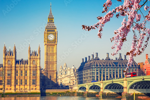 Big Ben and westminster bridge in London at spring