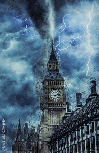 Westminster Abbey during the heavy storm, rain and lighting in England, creative picture