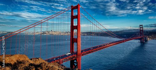 panoramic view of famous Golden Gate Bridge