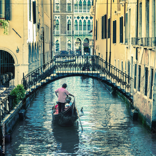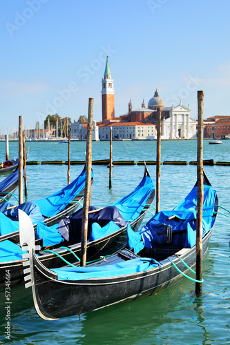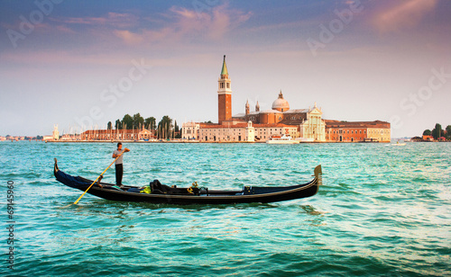 Gondola with San Giorgio Maggiore at sunset, Venice, Italy