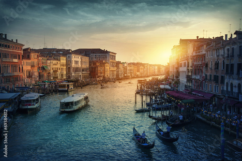 Canal Grande with Rialto Bridge at sunset, Venice, Italy