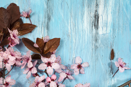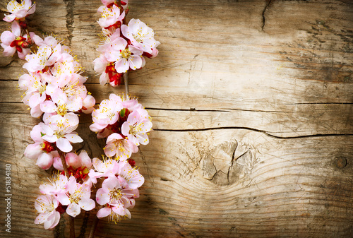 Spring Blossom over wood background