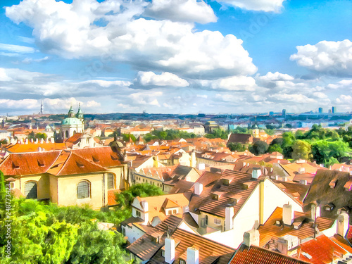 Watercolor urban landscape. Prague, Czech Republic.