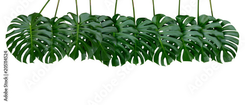 Monstera plant leaves, the tropical evergreen vine isolated on white background, clipping path included