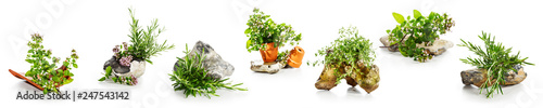 Marjoram, oregano, rosemary garden herbs set