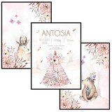 Przedmiotem sprzedaży jest zestaw plakatów w formie metryczki. Aby dokonać personalizacji podaj nam niezbędne informacje w uwagach do zamówienia podczas dokonywania zakupów. W cenie zestawu zmiana imienia, daty, wagi, wzrostu.